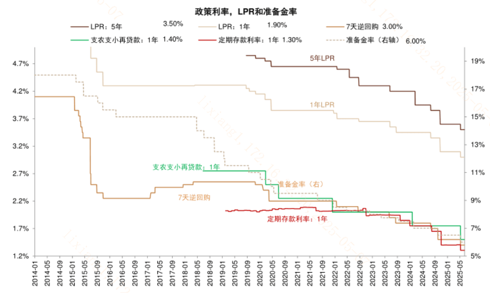 (3)降息:下调政策利率0.1个百分点,即公开市场7天期逆回购操作利率从目前的1.5%调降至1.4%,预计将带动贷款市场报价利率(LPR)同步下行约0.1个百分点。