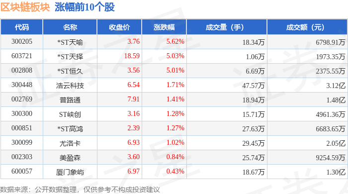 证券之星消息,5月15日区块链板块较上一交易日下跌2.25%,皖通科技领跌。当日上证指数报收于3380.82,下跌0.68%。深证成指报收于10186.45,下跌1.62%。区块链板块个股涨跌见下表: