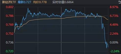 昨日尾盘涨停的新经济ETF(159822),今天早间高开高走,盘中最高涨约9%;但临近收盘又快速跳水,收跌1.22%;成交额较昨日(21.21亿元)进一步放大至约52亿元,换手率高达1084.22%。
