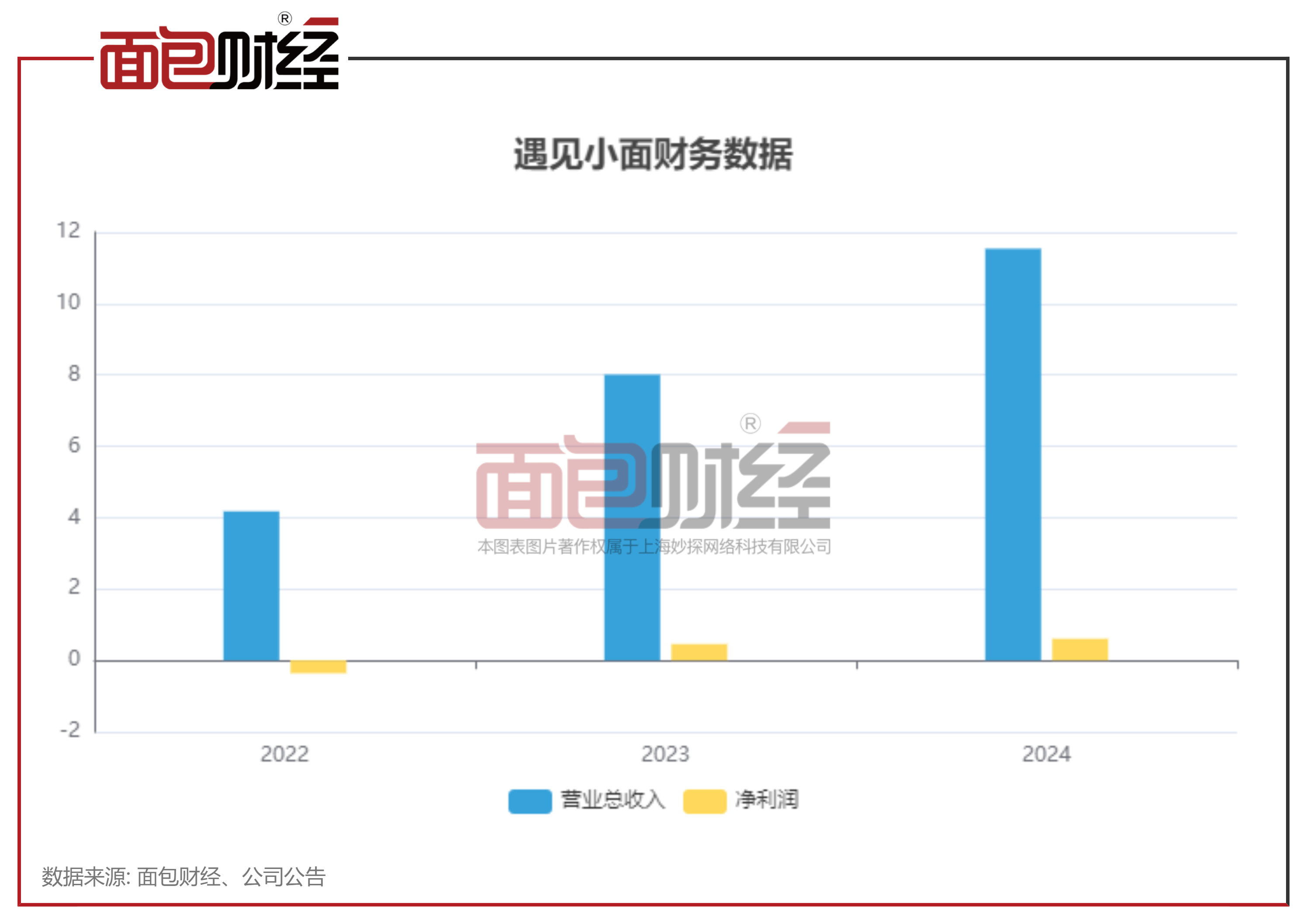 招股书披露,遇见小面在2022年、2023年和2024年分别实现营收4.18亿元、8.01亿元、11.54亿元,年复合增长率为66.2%。同期,公司净利润分别为-3597.3万元、4591.4万元和6070万元。
