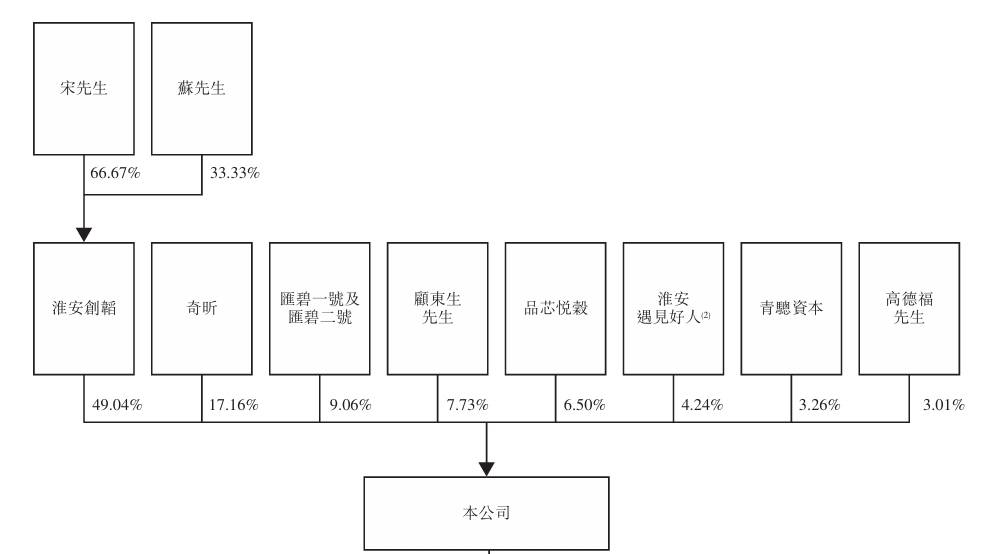根据招股书,宋奇和苏旭翔通过控制淮安创韬,持有公司约49.04%股份。此外,宋奇凭借担任公司雇员激励平台淮安遇见好人的普通合伙人,有权行使公司约4.24%股份所附带的投票权。