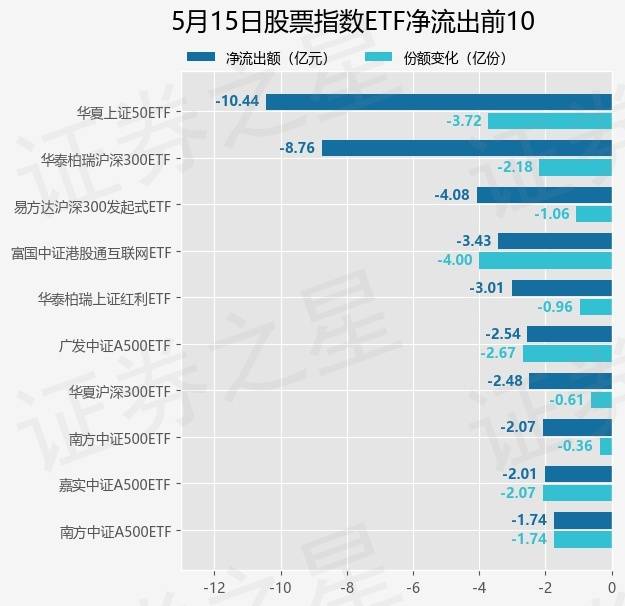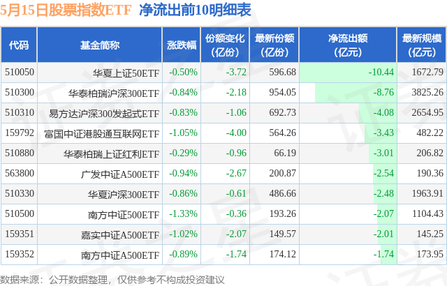 当日有352只股票指数ETF基金出现资金净流出,其中净流出排首位的是华夏上证50ETF(510050),份额减少了3.72亿份,净流出额为10.44亿元。