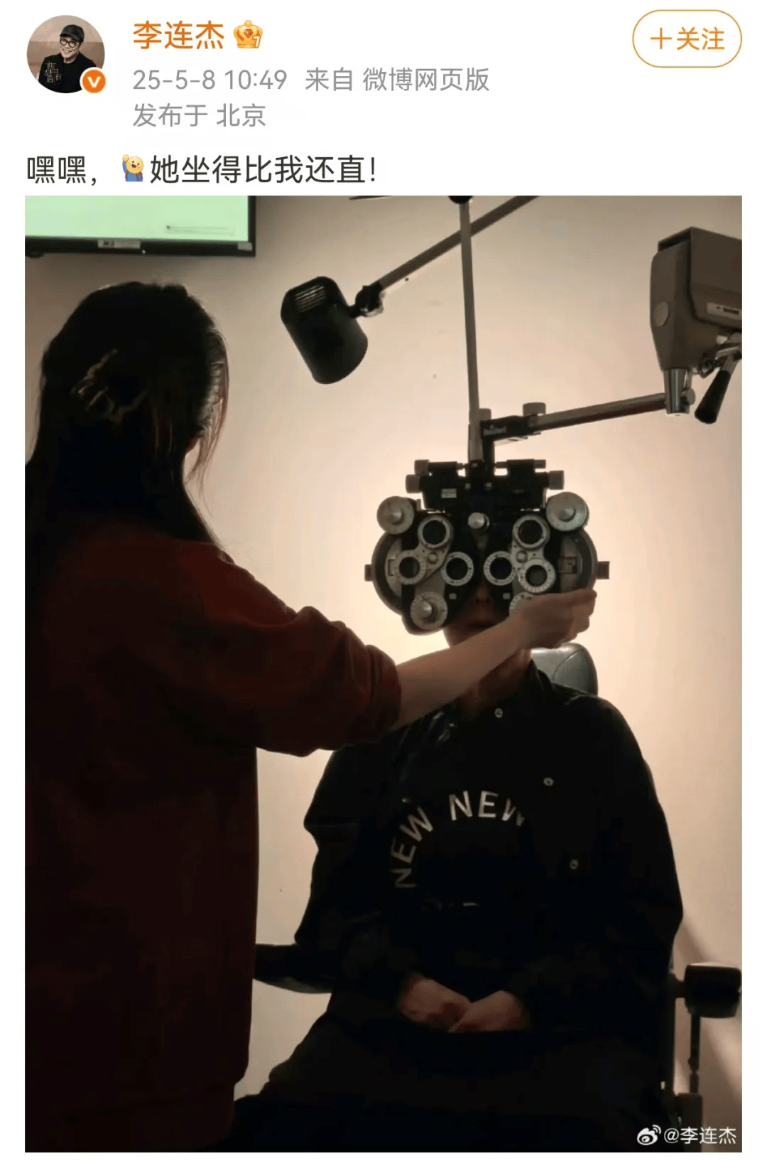 5月8日,知名影星李连杰在个人社交平台晒照,并配文:嘿嘿,她坐得比我还直!