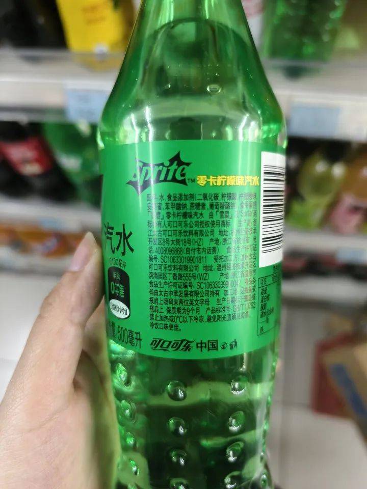 另一款500ml的零卡柠檬汽水味雪碧配料表里也有“安赛蜜、蔗糖素”,不过没有了白砂糖。