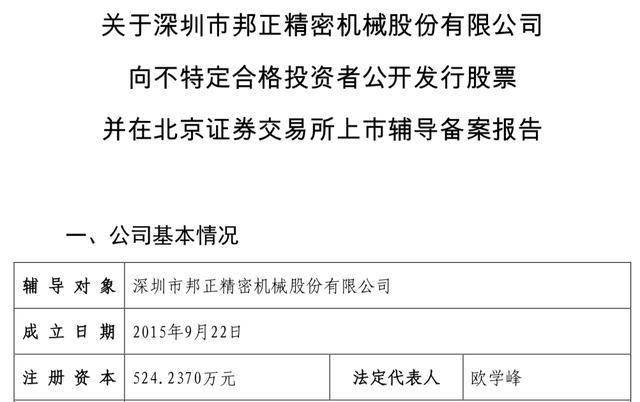 瑞财经 严明会 5月13日,深圳市邦正精密机械股份有限公司(以下简称:邦正精机)在深圳证监局完成IPO辅导备案,拟北交所IPO,辅导机构民生证券。