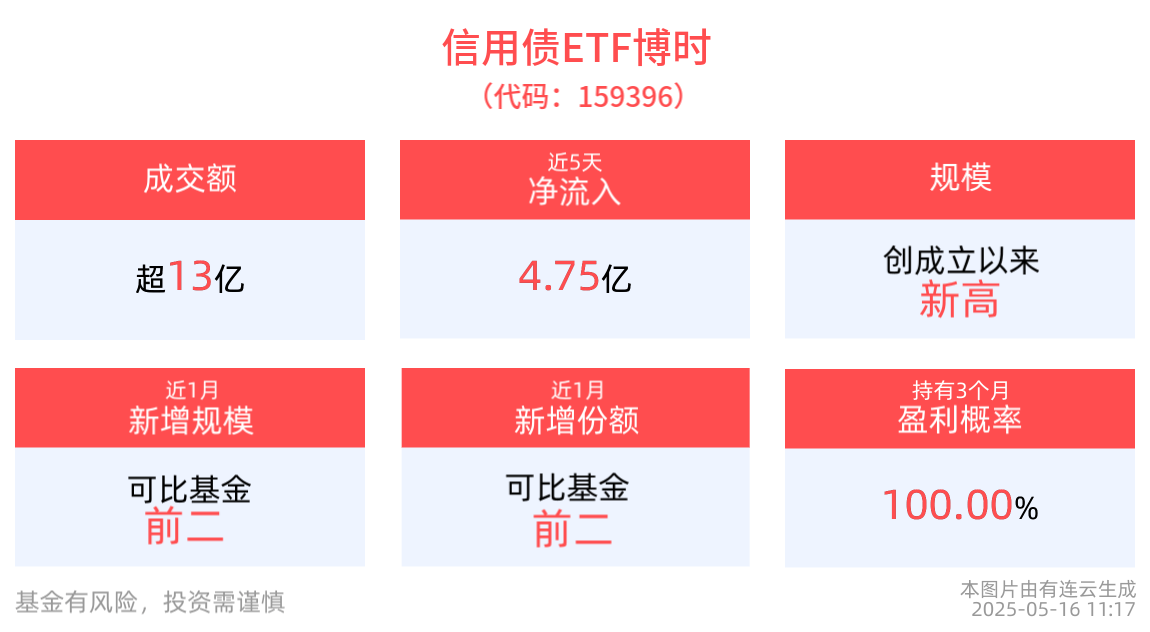 规模方面,信用债ETF博时最新规模达60.29亿元,创成立以来新高,位居可比基金1/4。