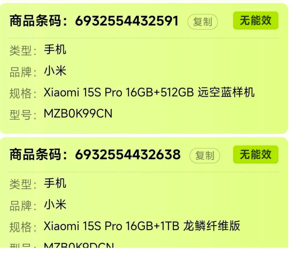 喏,刚刚泄露的信息就显示,小米 15S Pro 将提供「远空蓝」和「龙鳞纤维」两个配色。