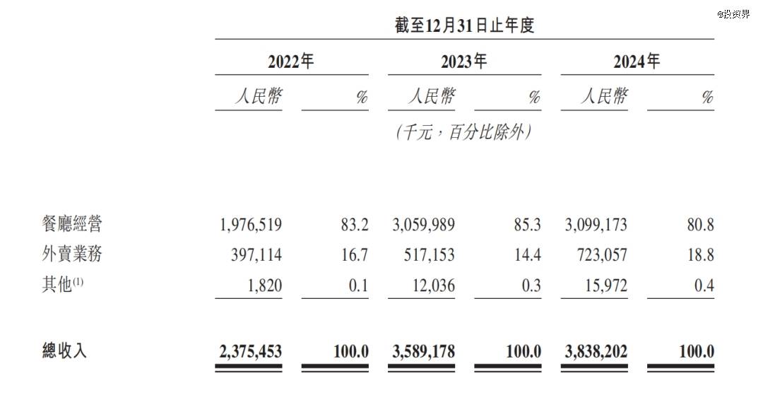 业绩上来看,2022年至2024年,绿茶集团的营业收入分别为人民币23.75亿、35.89亿和38.38亿元,相应的净利润分别为人民币0.17亿、2.96亿和3.50亿元,显示出一定的盈利能力。公司将业绩增长归因为餐厅数量增加。