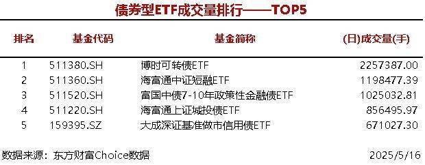 每经AI快讯,据东方财富Choice数据统计,今日共5只股票型ETF成交量超2000万手,华夏中证A500ETF成交3461.33万手,债券型ETF成交量最大的是博时可转债ETF(225.74万手),商品型ETF成交量最大的是华安黄金易ETF(855.27万手)。