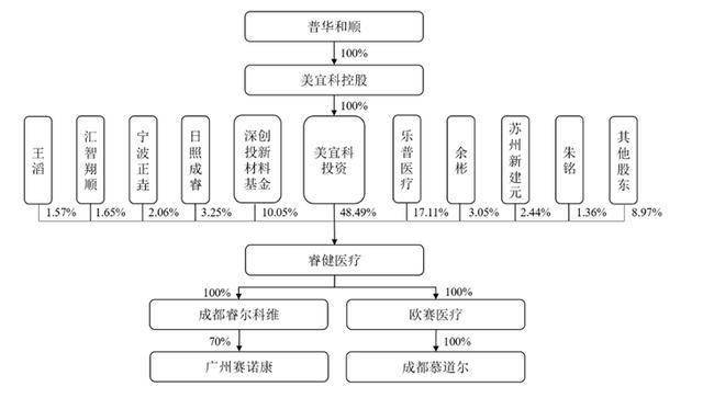 截至递交招股书前,睿健医疗由美宜科投资持股48.49%,由乐普医疗持股17.11%,由深创投新材料基金持股10.05%,由日照成睿持股3.25%,由余彬持股3.05%,由新建元股权投资持股2.44%,由员工持股平台宁波正垚持股2.06%,由汇智翔顺持股1.65%,由王滔持股1.57%,由朱铭持股1.36%,由其他股东合计持股8.97%。