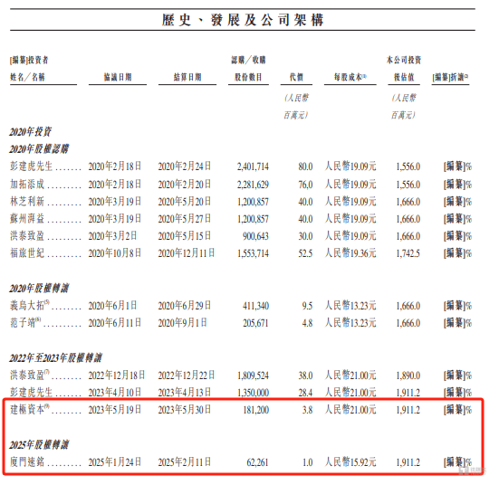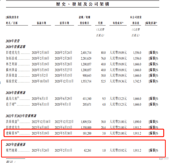 从上表可知,在2025年,仅厦门速铭转让了科拓股份的股权,但是事实似乎并非如此。科拓股份申报稿中的附注显示,2025年1月,建极资本将其持有科拓股份0.2%的股权以4100万元的价格转让给了铧龙电子。也就是说,在上述公司的历史、发展及公司框架中,科拓股份要隐藏建极资本股份转让事件。