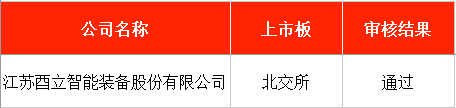 发审委审核方面,北交所召开新一期上市审核委员会审议会议。其中,拟在北交所IPO的江苏酉立智能装备股份有限公司(下称“酉立智能”)成功过会。