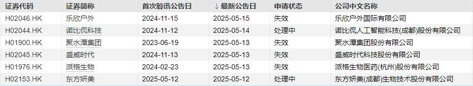 此外,乐欣户外国际有限公司、聚水潭集团股份有限公司、盛威时代科技股份有限公司、派格生物医药(杭州)股份有限公司等4家公司的申请失效。