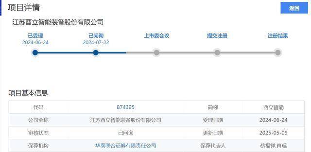 据悉,酉立智能IPO于2024年6月24日获得受理,当年7月22日进入问询阶段。