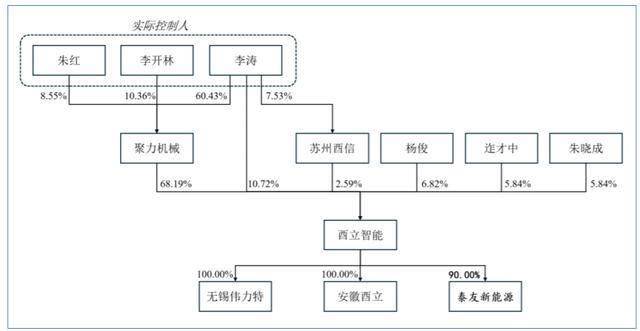 酉立智能实际控制人为李涛、李开林及朱红,李涛、李开林、朱红通过控股股东聚力机械间接控制公司68.19%的表决权,李涛直接持有公司10.72%的股份,并通过苏州酉信间接控制公司2.59%的表决权,李涛、李开林及朱红合计控制公司81.49%的表决权。李开林及朱红为李涛父母。