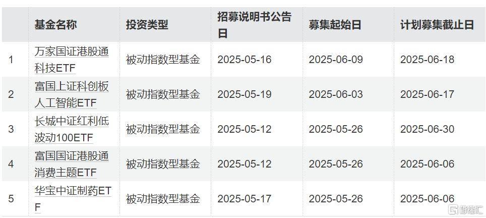 下周长城中证红利低波动100ETF、富国国证港股通消费主题ETF和华宝中证制药ETF下周开始发行。