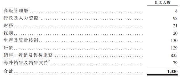 其中,员工福利开支占销售开支的八成,三年共支出3.88亿元。2024年,公司销售、营销及售后服务人员合计914人,占公司总员工数接近70%,庞大的销售人数导致人力资源成本高企。