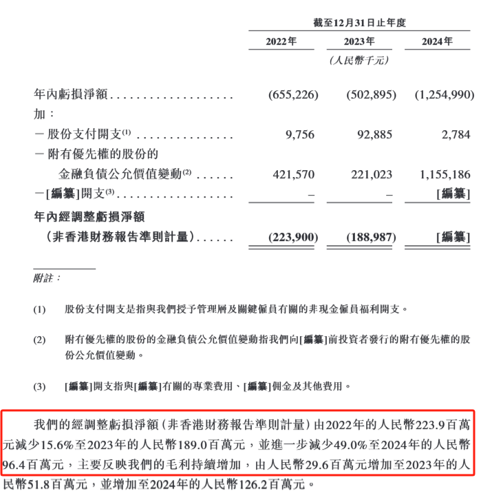 公司过去3年尚未实现盈利但亏损规模呈收窄趋势。根据聆讯资料集披露,公司2022-2024年经调整亏损净额分别为2.24亿元、1.89亿元、0.96亿元。