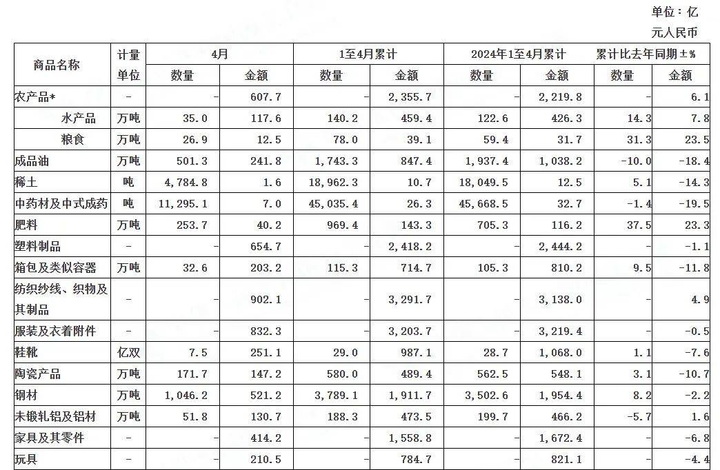 家具出口额4月同比减少6.8%