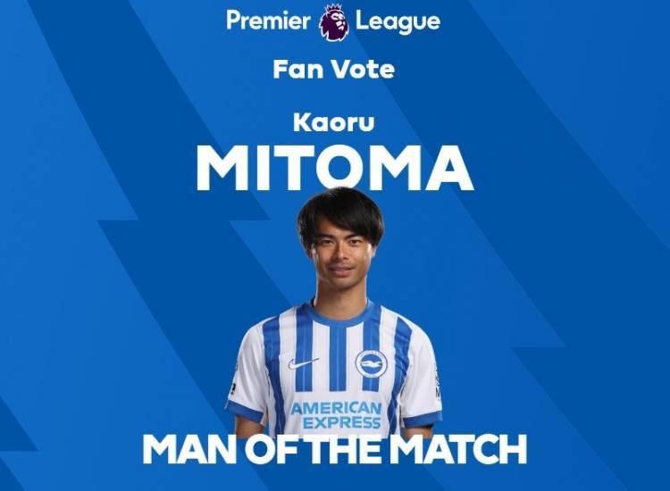 本场比赛三笘薫表现出色,贡献1粒进球,2次射正,1次关键传球,赛后他也当选英超官方球迷票选全场最佳球员。