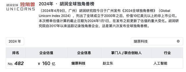 据2024年胡润全球独角兽榜,燧原科技的估值约160亿元。