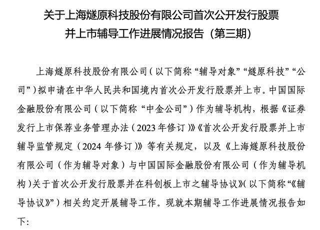 瑞财经 吴文婷近日,上海燧原科技股份有限公司(以下简称“燧原科技”)披露IPO辅导工作进展情况报告(第三期),辅导机构为中国国际金融股份有限公司(以下简称“中金公司”) 。