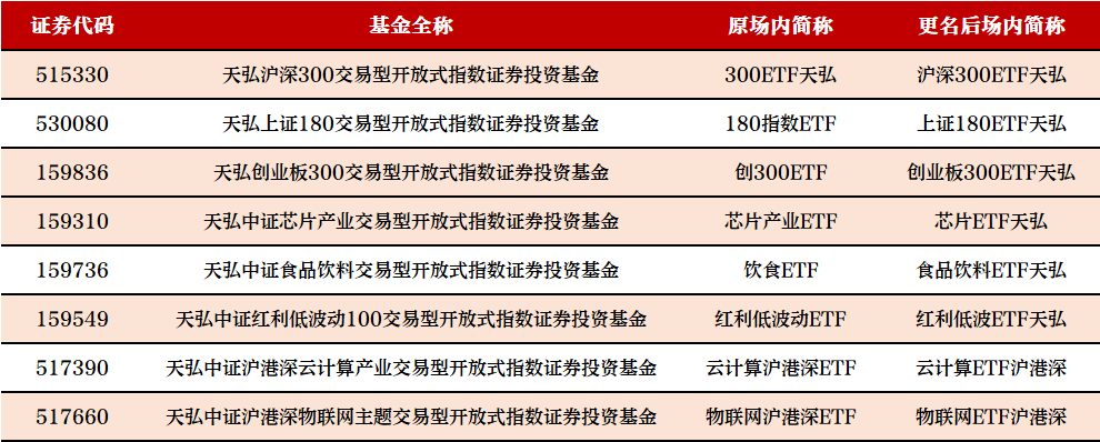 天弘基金8只ETF集体"改名”