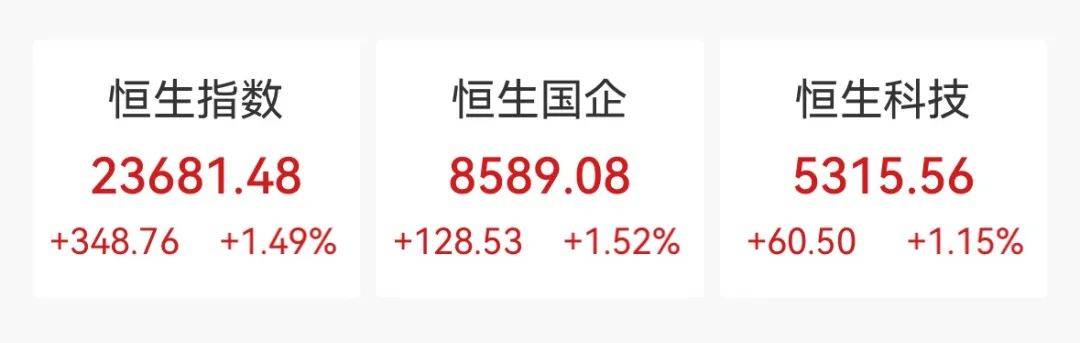 5月20日,港股三大指数全天维持强势,最终集体收涨。截至收盘,恒生指数涨1.49%,报23681.48点;恒生国企指数涨1.52%,报8589.08点;恒生科技指数涨1.15%,报5315.56点。