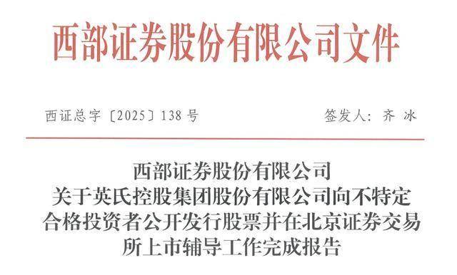 瑞财经 吴文婷5月19日,英氏控股集团股份有限公司(以下简称“英氏控股”)披露北交所IPO辅导工作完成报告,辅导机构为西部证券股份有限公司。