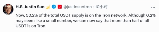 最新统计显示,波场TRON网络的USDT发行量已突破757亿美元,占USDT总发行量的50.2%,已超越以太坊网络历史峰值,标志着波场TRON时隔半年后重登全球最大USDT发行公链宝座。