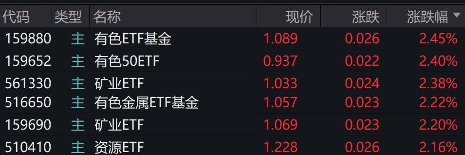 受盘面影响,多只有色、矿业相关ETF涨超2%。