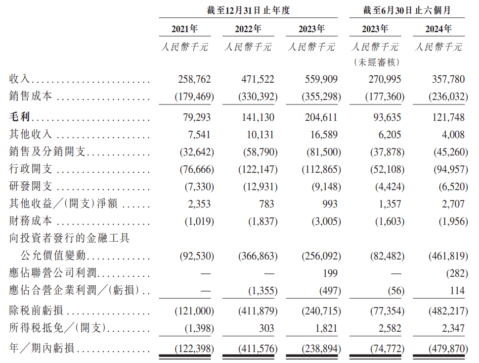 但即便如此,圣贝拉仍然连年亏损。2021年-2023年,以及2024年上半年,圣贝拉亏损分别为1.22亿元、4.12亿元、2.39亿元、4.80亿元,仅以上述报告期内计算,公司亏损总额就高达12.53亿元。
