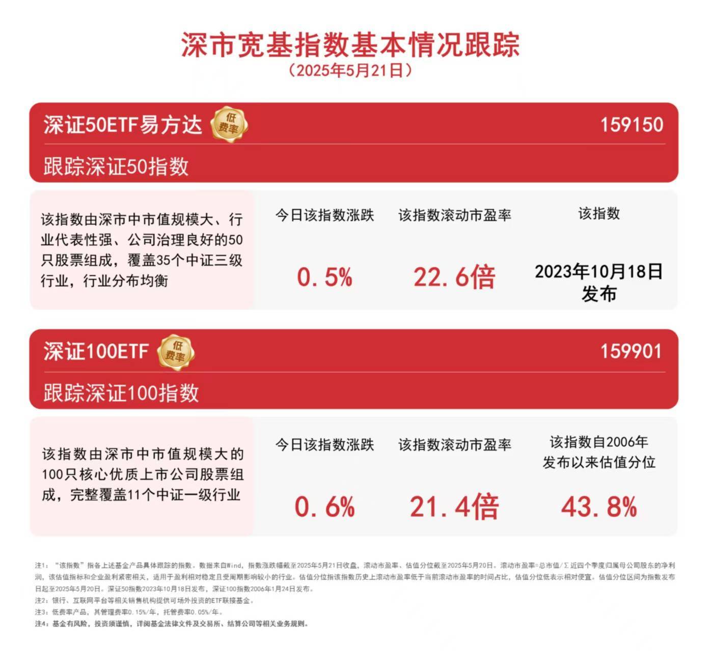 截至收盘,深证100指数上涨0.6%,深证50指数上涨0.5%。