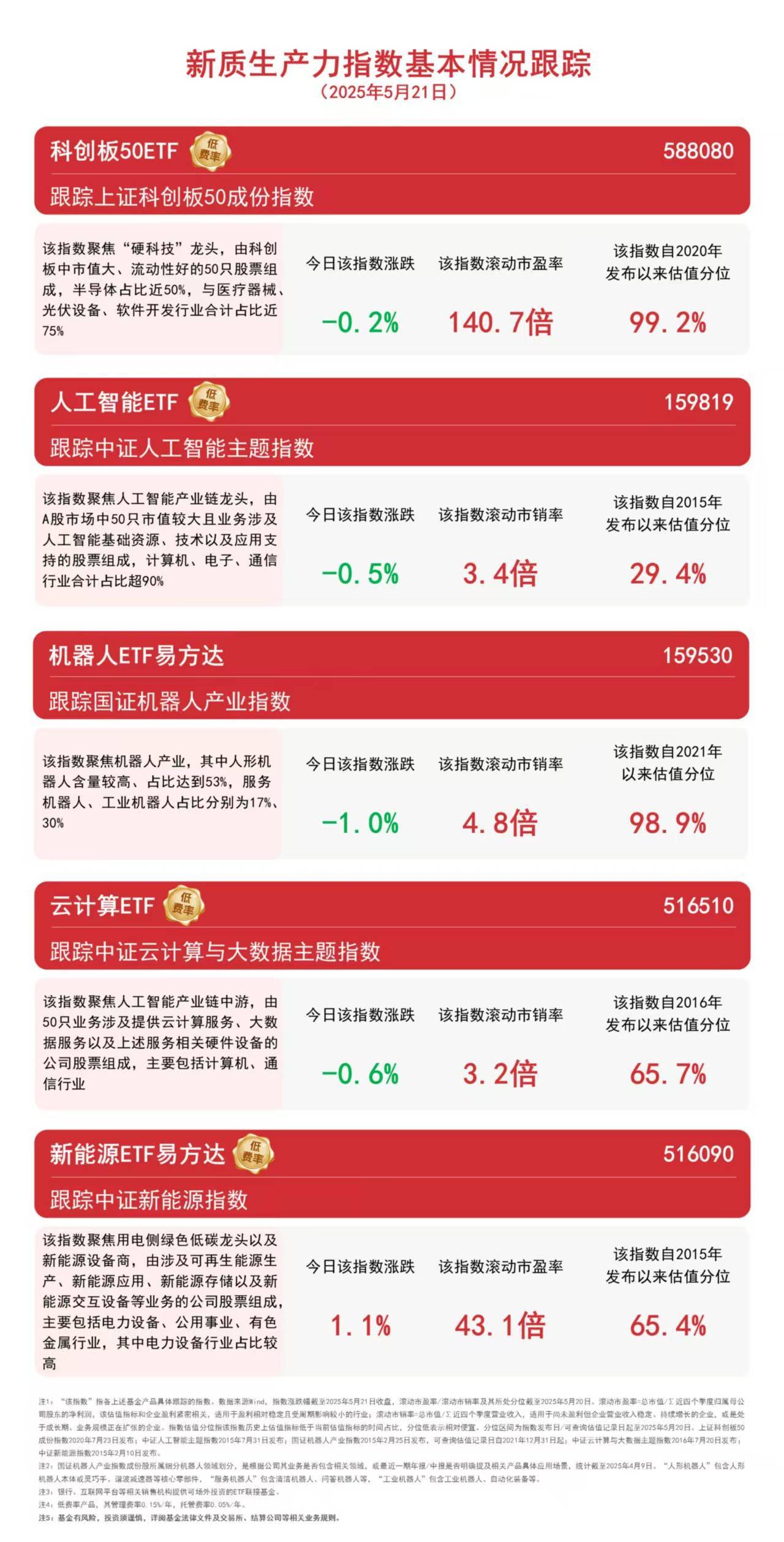 截至收盘,中证新能源指数上涨1.1%,上证科创板50成份指数下跌0.2%,中证人工智能主题指数下跌0.5%,中证云计算与大数据主题指数下跌0.6%,国证机器人产业指数下跌1.0%。
