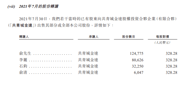 与此同时,在同一时间段内,俞光、李丽、石钧、俞清还均以328.28元/股的价格将其持有铜师傅的部分股权转给了共青城金达,彼时市场对其前景的乐观预期可见一斑。