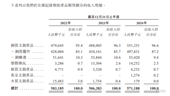 得益于铜质文创产品大发展,根据弗若斯特沙利文报告,截至2024年12月末,铜师傅在中国铜质文创工艺产品市场按总收入计位列第一,市场份额达35.0%。