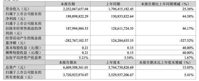 2025年一季度,公司实现营业收入22.52亿元,同比增长25.36%;归母净利润为1.89亿元,同比增长44.38%。