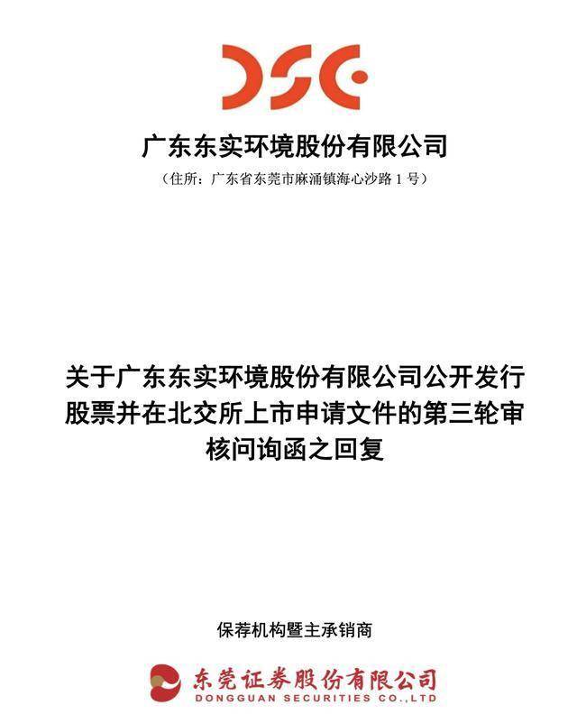 瑞财经 吴文婷5月19日,广东东实环境股份有限公司(以下简称“东实环境”) 在北交所披露IPO第三轮审核问询函的回复,保荐机构为东莞证券。