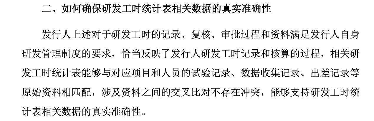 对此,东实环境表示,对于研发工时的记录、复核、审批过程和资料满足公司自身研发管理制度的要求,恰当反映了公司研发工时记录和核算的过程,相关研发工时统计表能够与对应项目和人员的试验记录、数据收集记录、出差记录等原始资料相匹配,涉及资料之间的交叉比对不存在冲突,能够支持研发工时统计表相关数据的真实准确性。