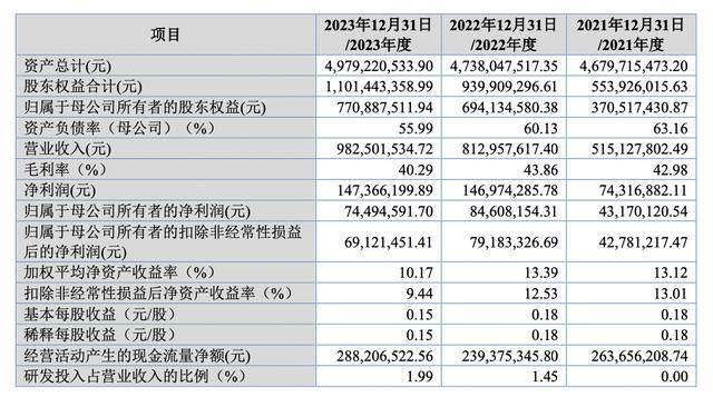 业绩方面,2021年-2023年,东实环境实现营业收入分别为5.15亿元、8.13亿元、9.83亿元;归属于母公司所有者的净利润分别为4317万元、8460.82万元、7449.46万元。