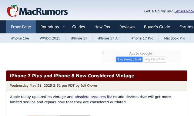 【环球网科技综合报道】据海外科技媒体MacRumors报道,苹果公司近期更新了产品支持页面,对部分iPhone和iPad产品的支持状态进行了调整。其中,iPhone 7 Plus以及64GB/256GB版本的iPhone 8被正式列为“过时”(vintage)产品。值得注意的是,此前(PRODUCT)RED红色版iPhone 8已进入“过时”名单,而128GB版iPhone 8因销售周期较长,暂未被纳入该列表。
