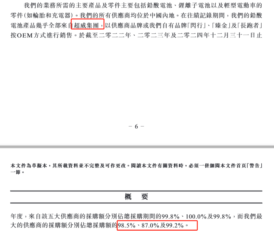 在过往记录期间,快驴科技的铅酸电池产品几乎全部来自超威集团。2022年至2024年,公司来自最大供应商的采购额分别占总采购额的98.5%、87.0%及99.2%。