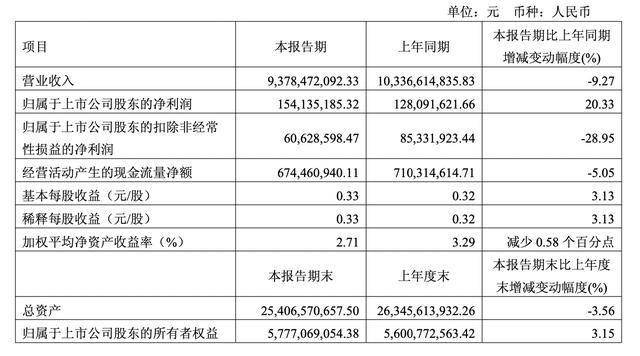 2025年一季度,公司实现营收为93.78亿元,同比减少9.27%;归母净利润为1.54亿元,同比增长20.33%。