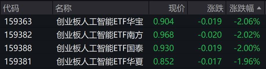 受盘面影响,跟踪创业板人工智能指数的ETF跌约2%。
