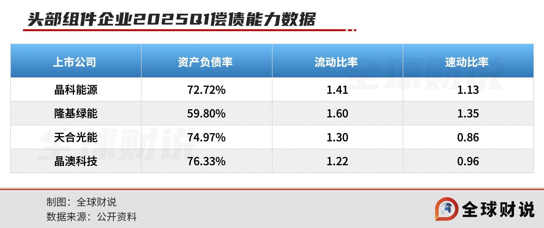 2025年一季度,“光伏F4”中,晶澳科技的其他偿债能力数据也几乎垫底。
