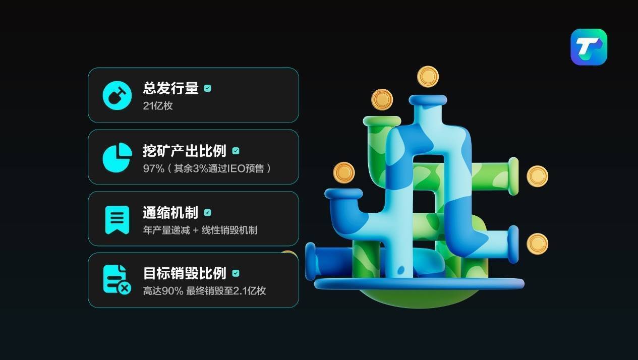三、挖矿机制:稀缺通缩模型 + 比特币算力兑换机制