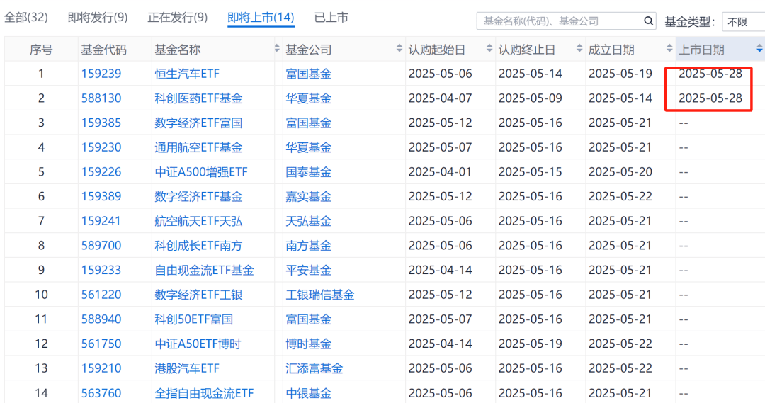 下周即将有恒生汽车ETF、科创医药ETF基金等上市,另外近期多只航空航天相关ETF即将密集上市。
