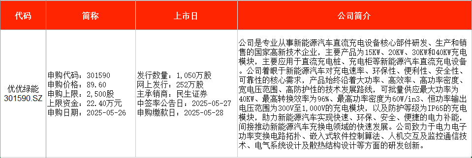 从时间表看,优优绿能在周一(5月26日)申购,影石创新则在周五(5月30日)申购。