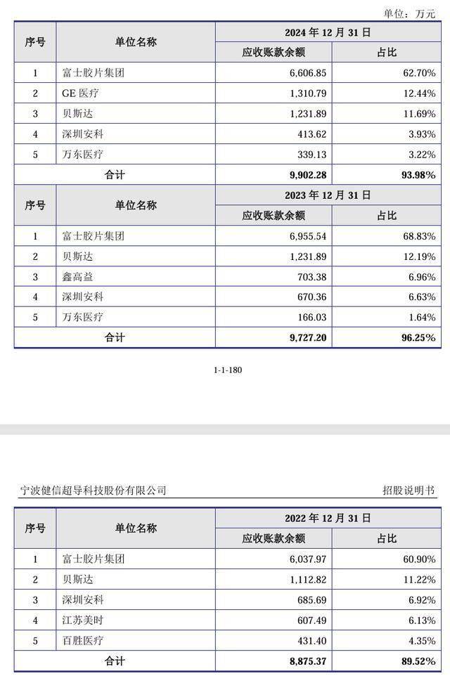 除了富士胶片集团外,瑞财经《预审IPO》还注意到了健信超导的一位客户——GE医疗。2024年,其向健信超导采购了3,776.8万元的超导产品,位列健信超导当期第三大客户。