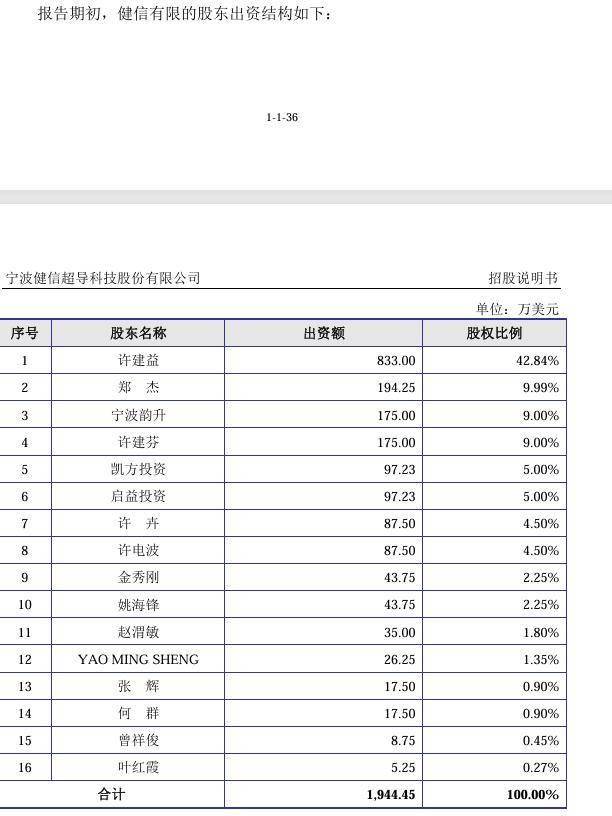 截至健信超导此次递交招股书前,许建益、许卉及许电波分别直接持有公司41.51%、4.36%及4.36%的股份,许卉同时还通过凯方投资、启益投资分别控制公司4.84%、4.84%表决权,三人可以合计控制公司59.92%表决权。